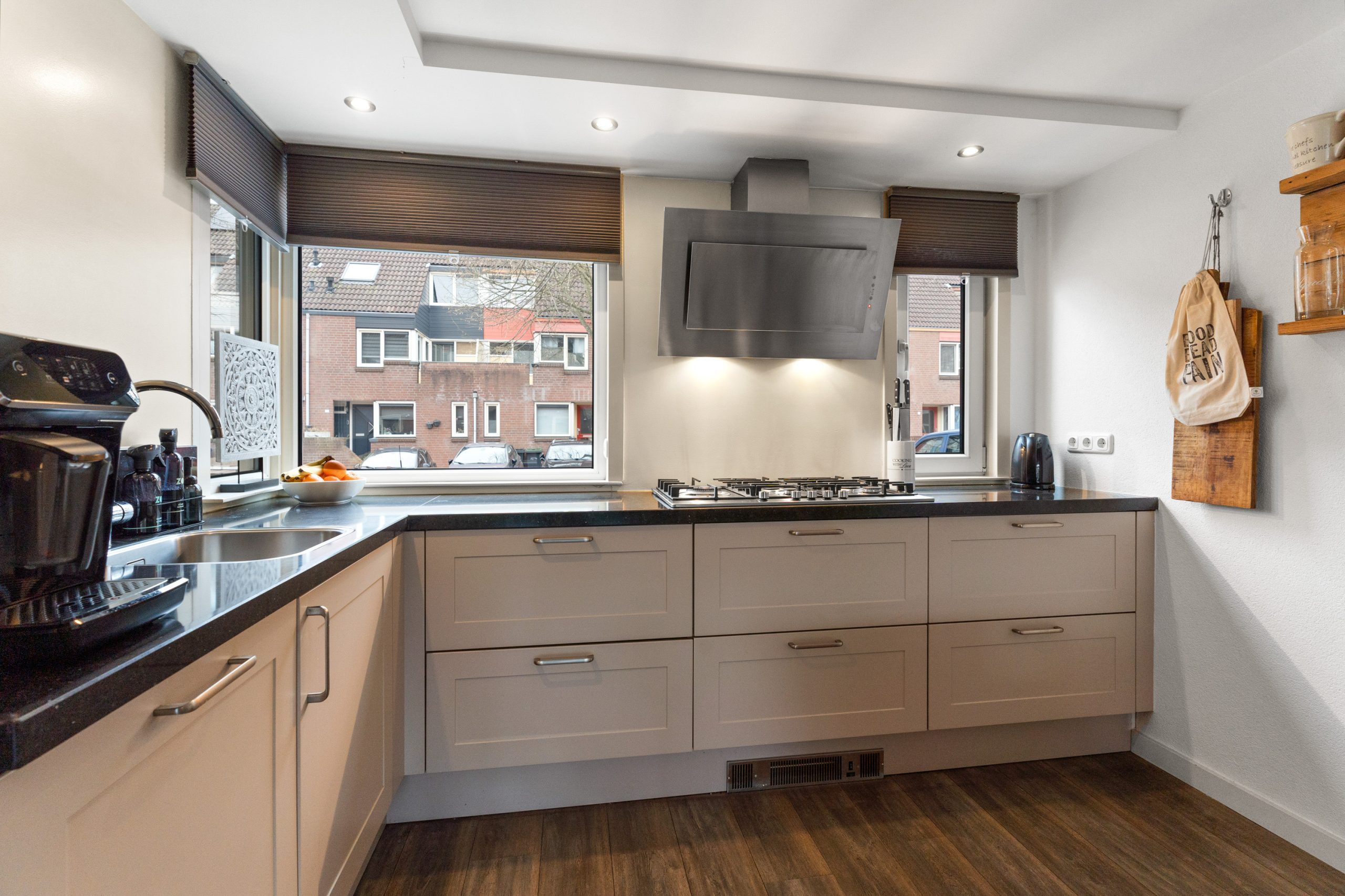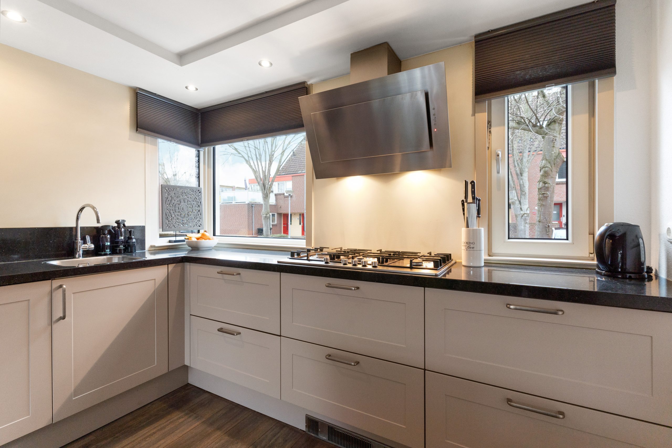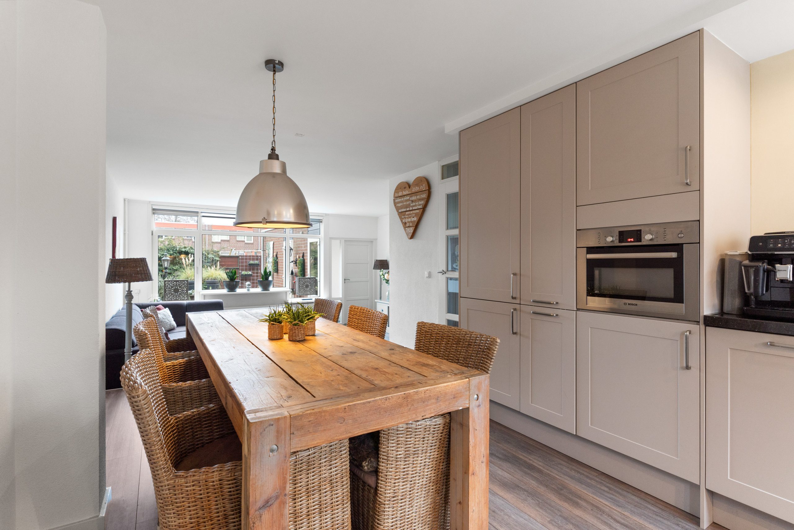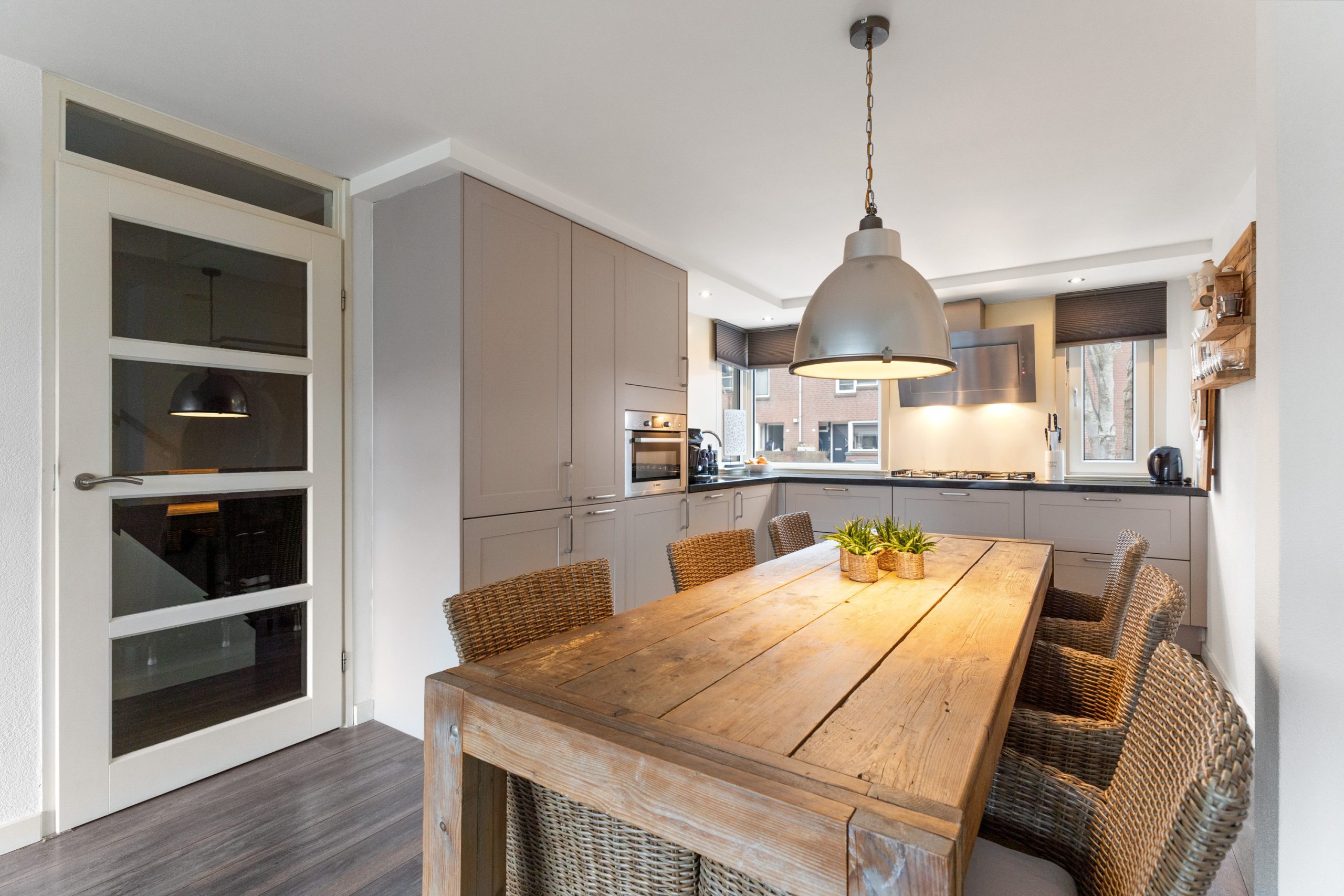 - Keuken voorzien van o.a. een 5-pits gas kookplaat, combi-oven, koel-vriescombinatie, vaatwasser