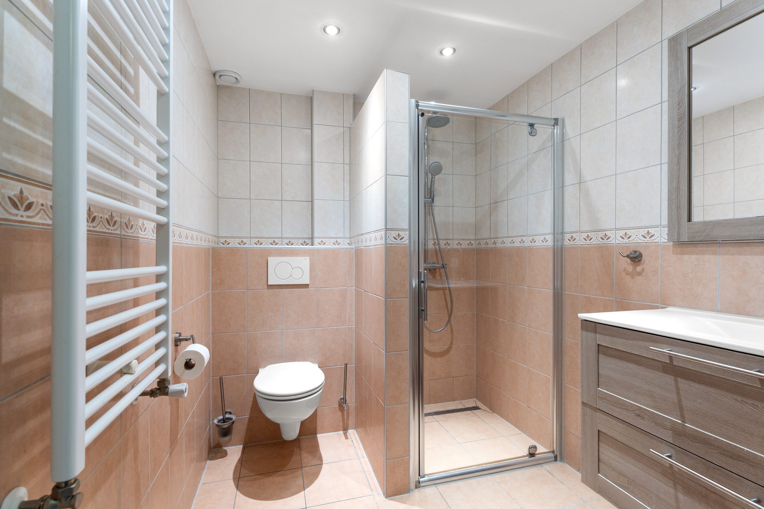 - Badkamer voorzien van o.a. een inloopdouche, toilet en wastafelmeubel