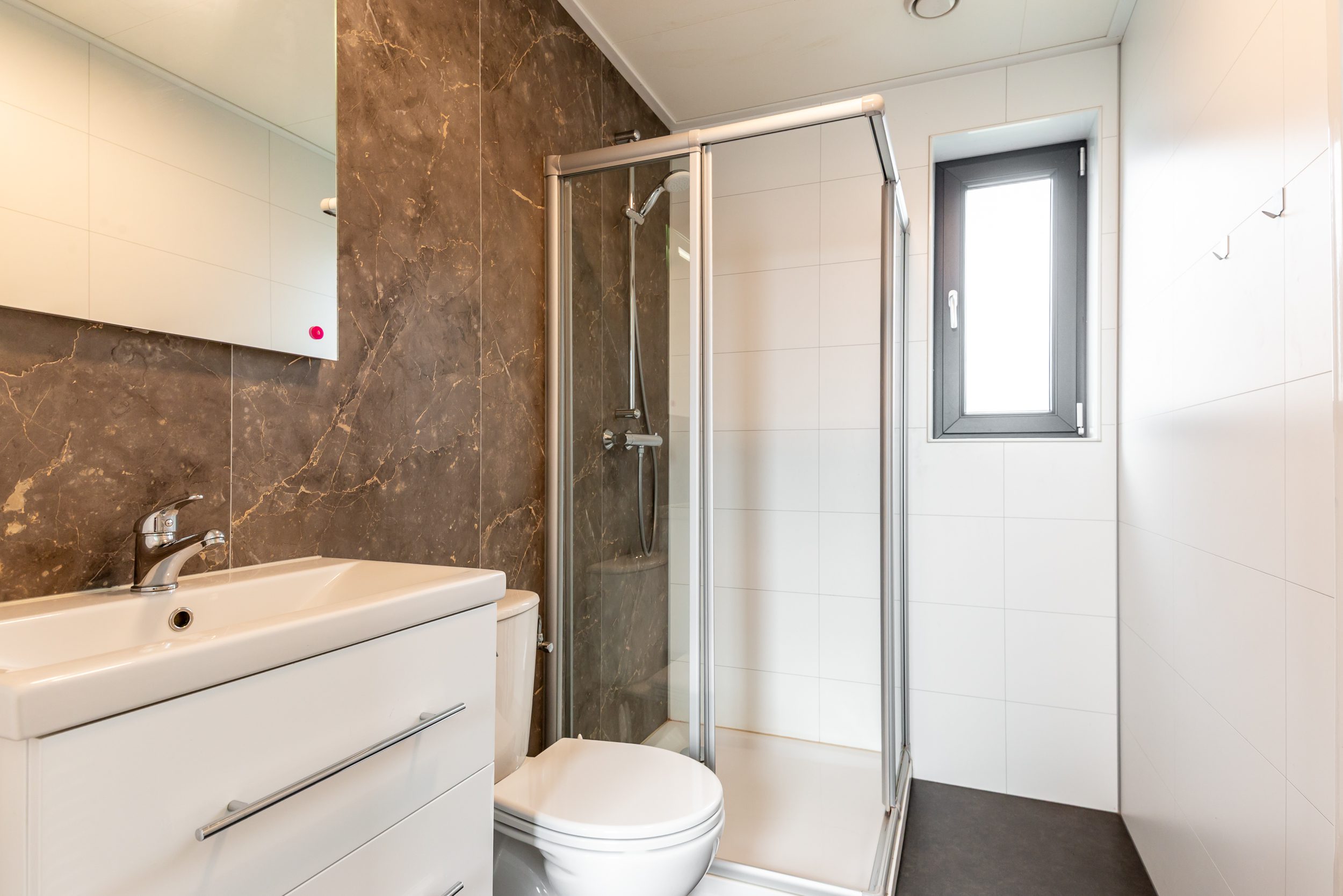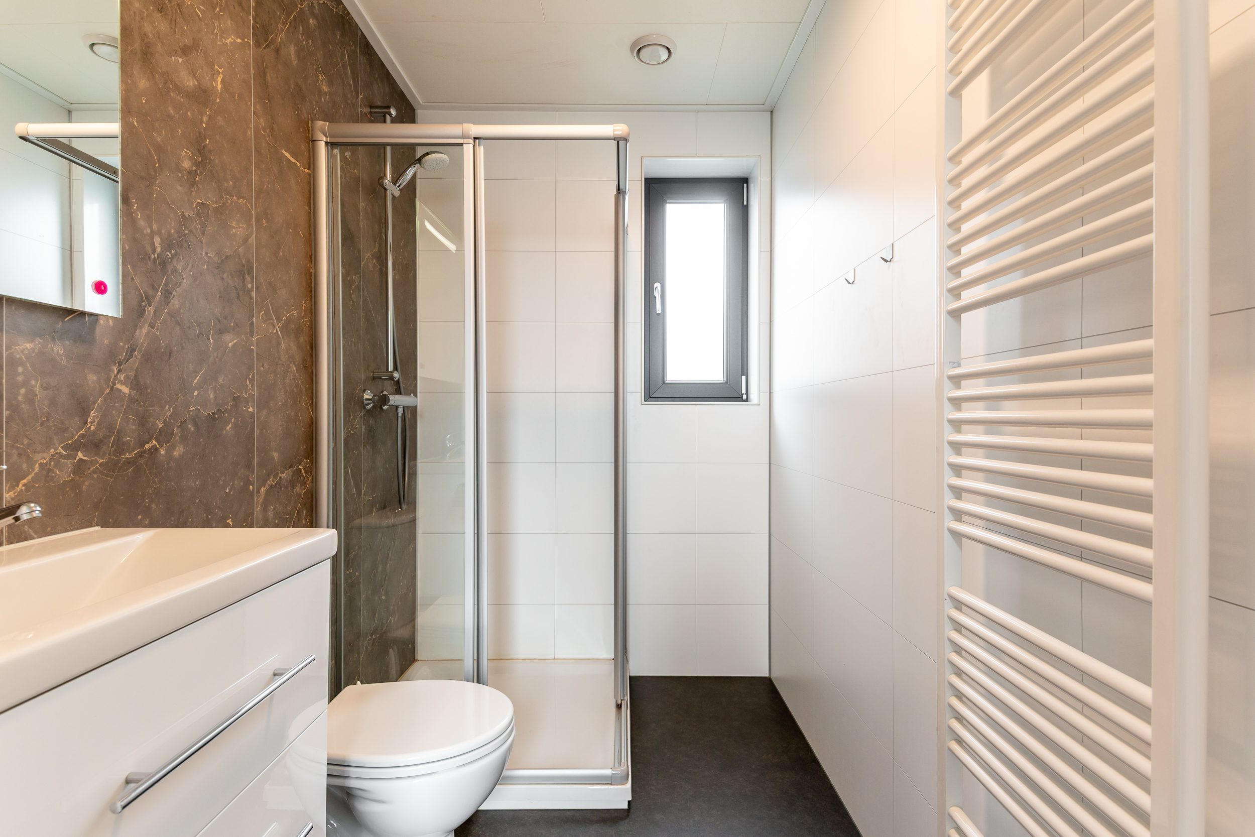 - Moderne badkamer met douche, toilet en wastafelmeubel