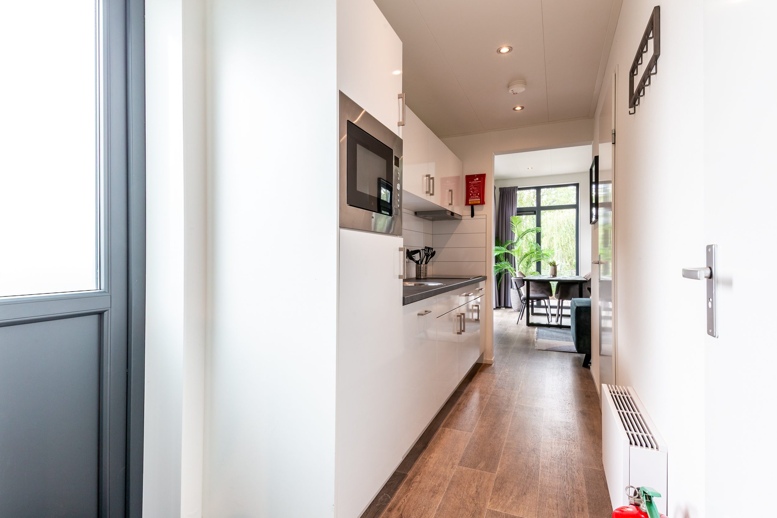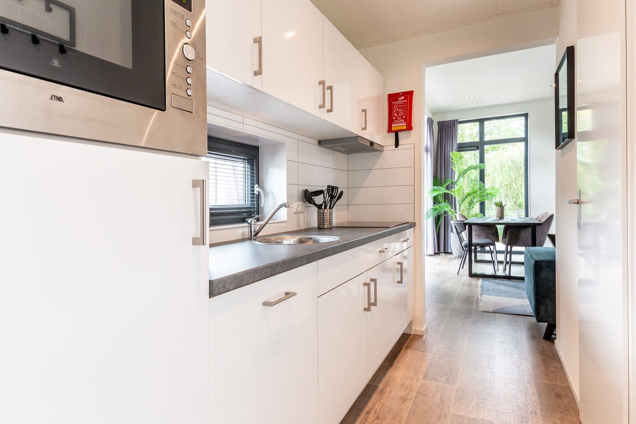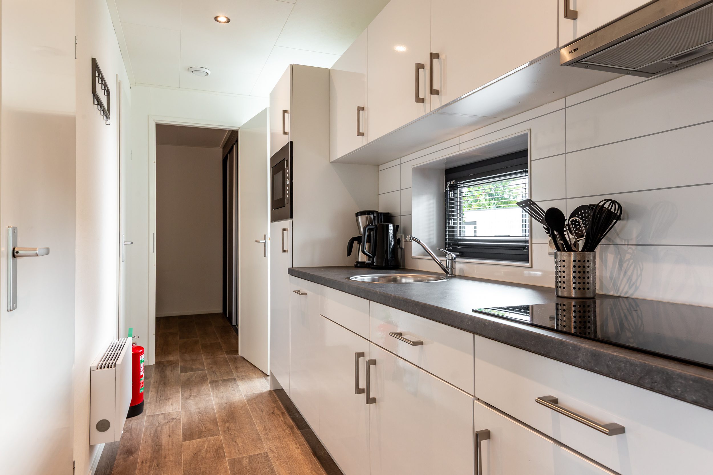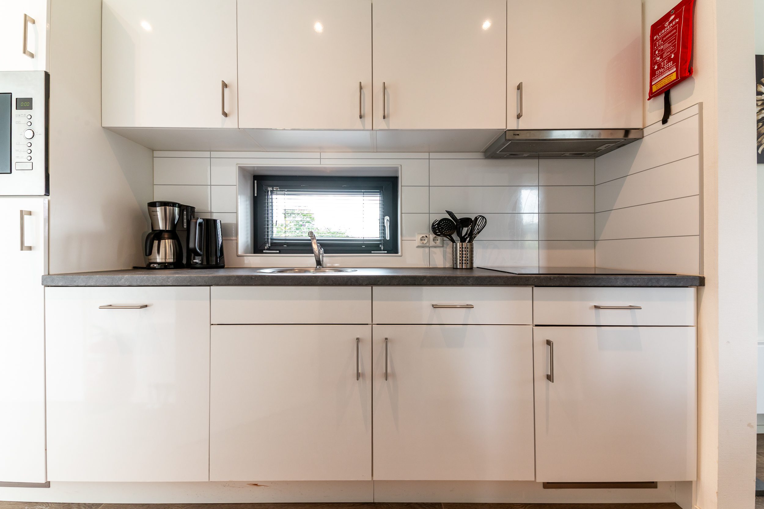 - Keuken van alle gemakken voorzien waaronder een inductiekookplaat, koel-vriescombinatie